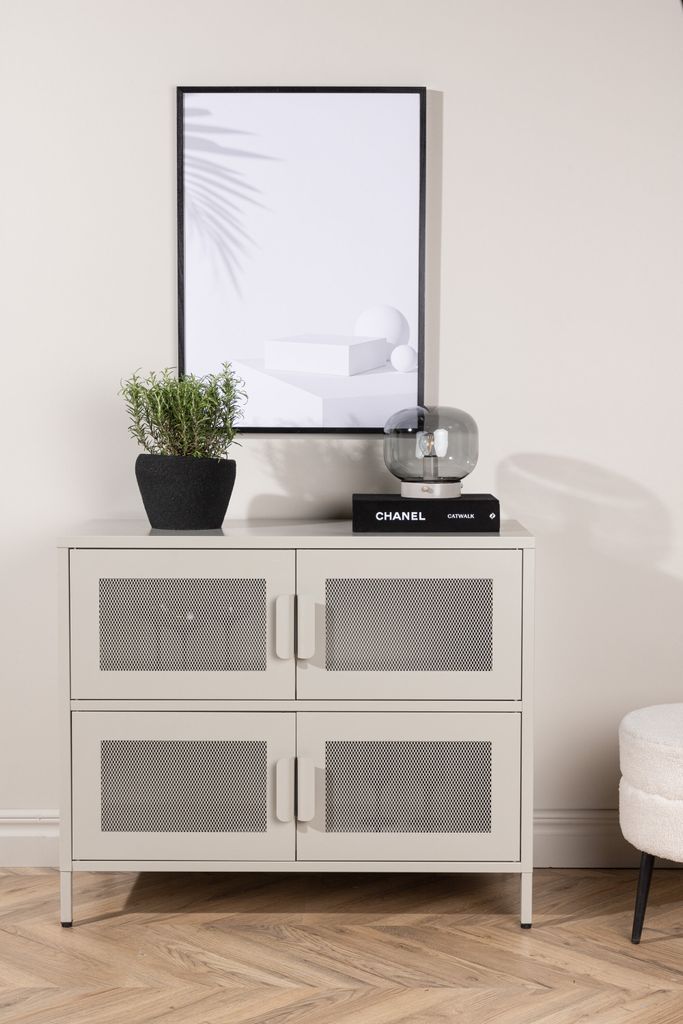 Upptäck Venture Home Nett Förvaringsskåp, en smart och stilren lösning för ditt hem. Tillverkat i elegant beige stål, skapar skåpets industriella design en modern känsla. De unika nätluckorna är inte bara en estetisk detalj utan ger även en praktisk funktion för semi-dold förvaring.