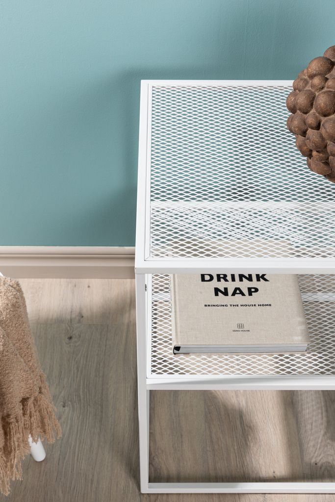 Bordet är utrustat med ett praktiskt hyllplan i rutnät, idealiskt för enklare förvaring eller för att visa upp dekorativa föremål. Den vita färgen ger en fräsch och ren estetik som passar de flesta inredningsstilar. Oavsett om du behöver en avlastningsyta, en piedestal eller ett sidobord, levererar Netz både funktionalitet och stil.