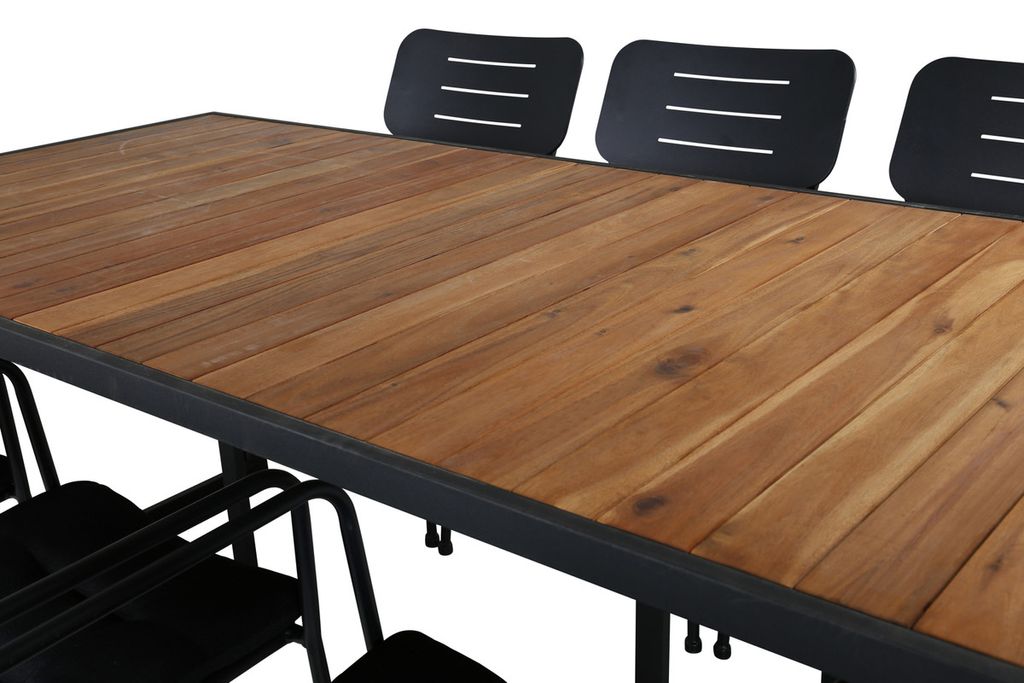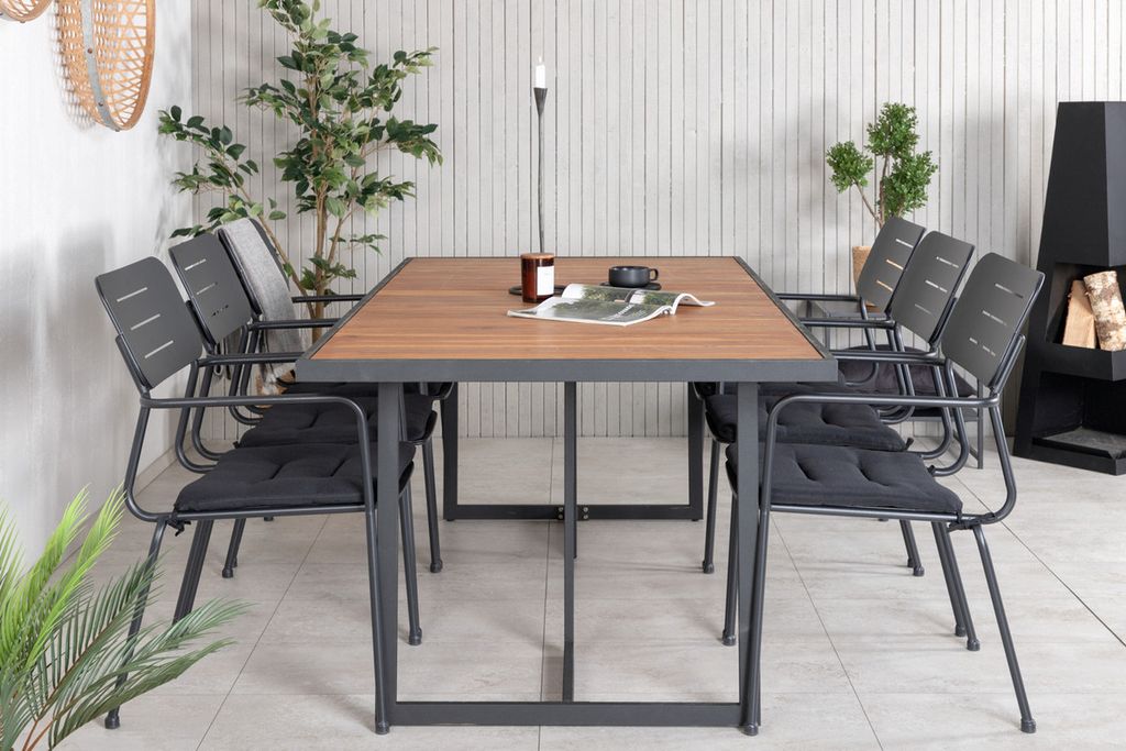 Venture Home Nicke & Khung 6 st Matstolar Svart + Rektangulärt Matbord 200 x 100 Natur