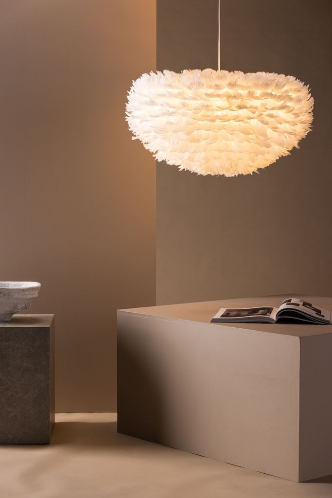 Nicola taklampa med konstgjorda fjädrar skapar en varm och ombonad känsla i ditt hem.