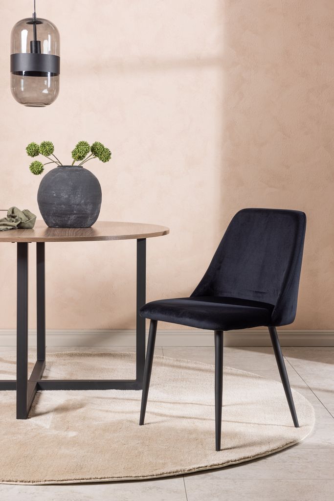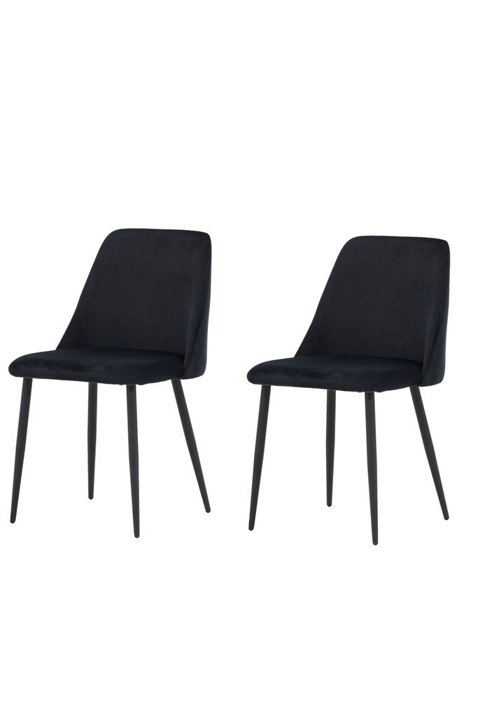 Upptäck Venture Home Night Matstol 2-pack, en perfekt kombination av stil och komfort för ditt matrum. Dessa stolar har en helklädd sits i elegant svart sammet, vilket ger en sofistikerad touch till din inredning. Stolsbenen i matchande svart stål ger både stabilitet och ett modernt utseende. Med en total höjd på 83 cm och en sitthöjd på 49 cm, erbjuder dessa stolar en bekväm sittställning för långa och njutbara måltider.