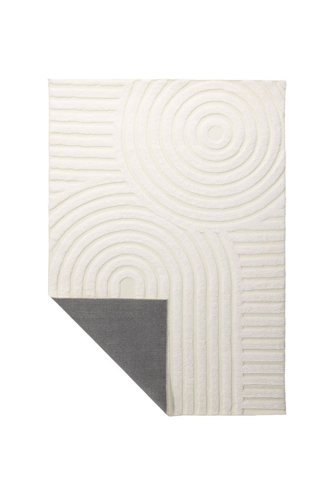 Elegant vit matta i polyester med unik, modern textur. Perfekt för att skapa en stilren och fräsch atmosfär i ditt hem.