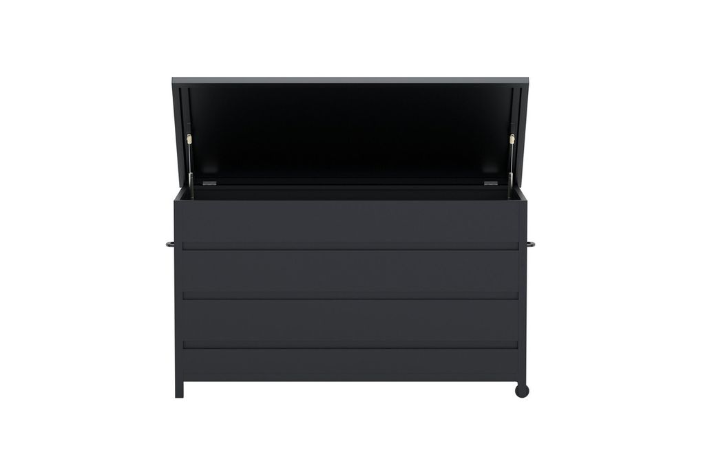 Håll ordning på uteplatsen med Nisis dynbox, en stilren och praktisk förvaringslösning i svart. Den rymliga boxen erbjuder gott om plats för dynor, filtar eller andra tillbehör, samtidigt som den skyddar innehållet mot väder och vind.