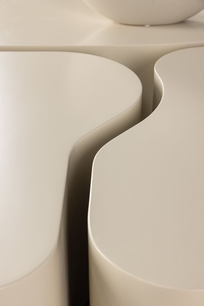 Bestående av tre individuella klossar, ger Nordland soffbordet en unik möjlighet att skapa olika konfigurationer. Det kan enkelt anpassas för att passa just ditt utrymme och stil. Varje kloss har en slät, modern finish som bidrar till bordets elegans och gör det till ett blickfång i rummet.