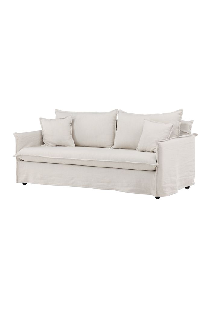 Rymlig och stilren 3-sits soffa i krämvit linne med hög komfort och modern design.