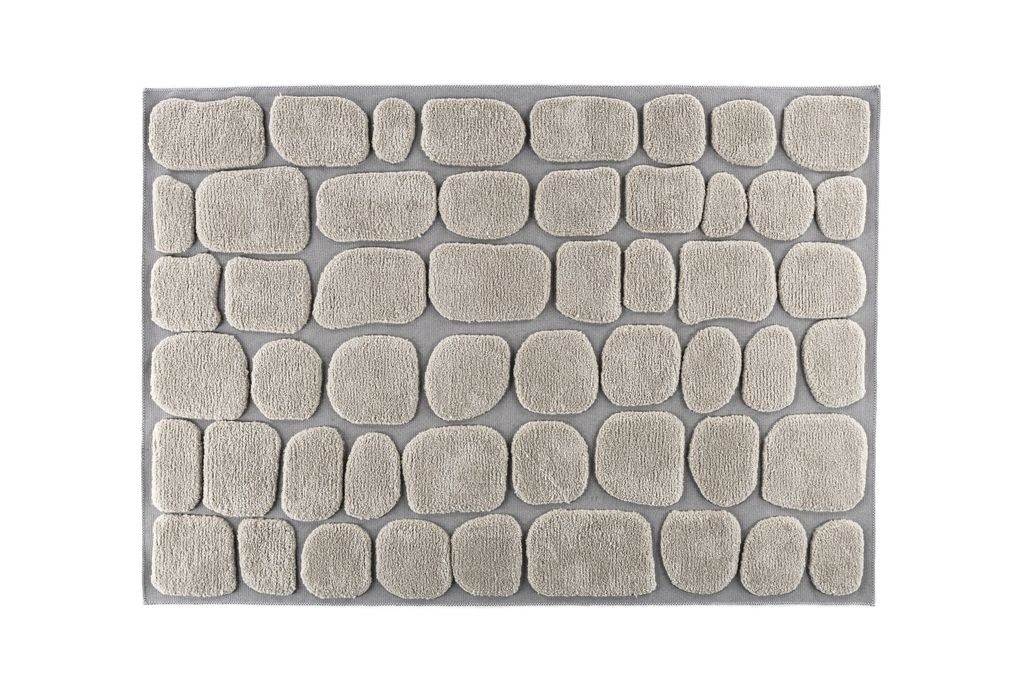 Den beige färgen ger en känsla av lugn och jordnära charm som kompletteras av den strukturerade ytan skapad av de asymmetriska stenformade tuftarna. Detta skapar en dynamisk och stilfull atmosfär, samtidigt som det ger en mjuk och behaglig känsla under fötterna.