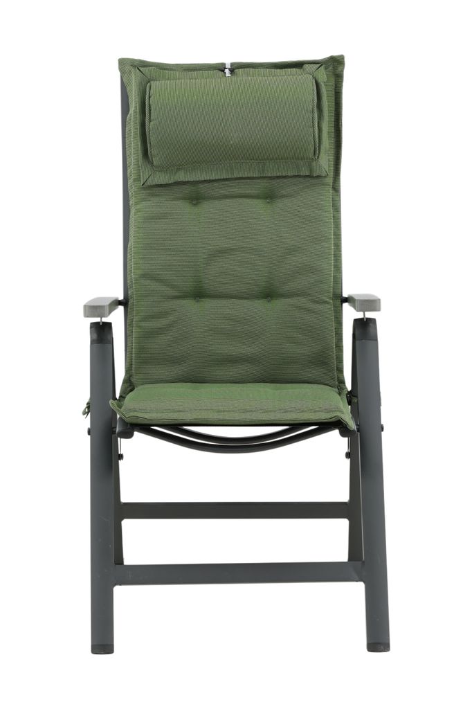 Olivgrön 5-positionsdyna med nackkudde, perfekt för sommarens stolar. Stilren och bekväm med praktiska remmar.