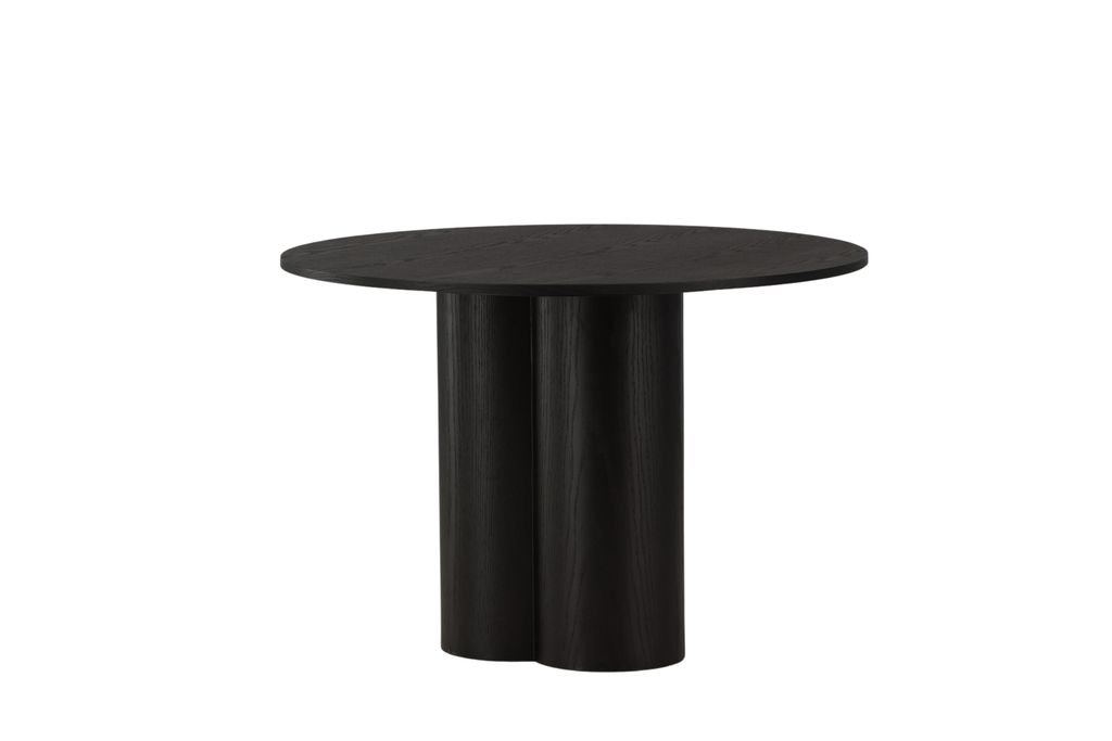 Den tunna, runda toppskivan på 110 cm vilar tryggt på tre robusta cylinderformade ben som är strategiskt placerade under bordets mitt. Detta ger inte bara stabilitet utan också ett modernt utseende som passar i alla moderna hem.