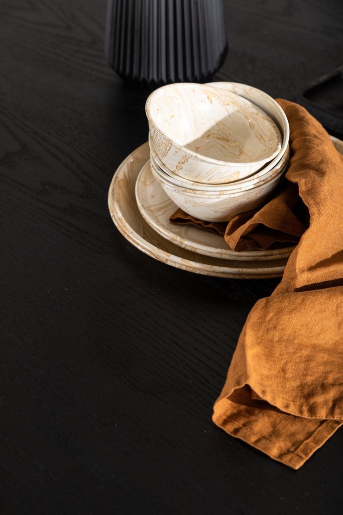 Bordets svarta färg har en lätt täcknad finish som harmoniserar med olika stilar och inredningar. Oavsett om du placerar det i köket eller matsalen, kommer Olivia matbord att erbjuda både praktisk nytta och stilfull estetik.