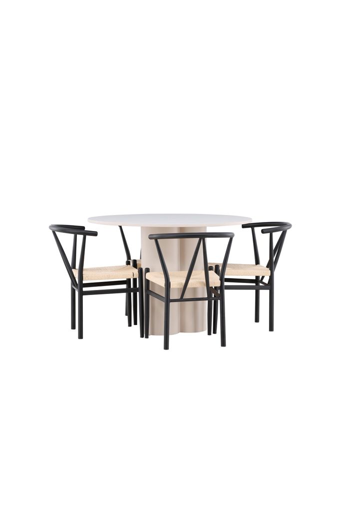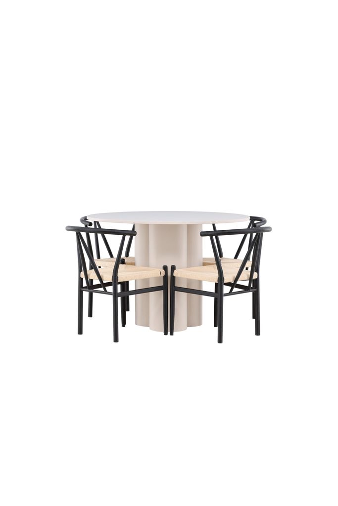 Skapa en elegant och inbjudande matplats med vår stilfulla matgrupp som kombinerar det vackra bordet Olivia med de charmiga Alfons-stolarna. Perfekt för både vardagsmiddagar och festliga tillfällen, ger denna matgrupp ditt matrum en modern och harmonisk känsla.