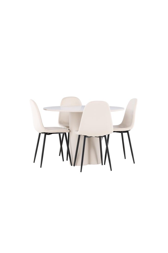 Elegant matgrupp med Olivia-bord och Polar-stolar i beige. Perfekt för både vardag och fest.