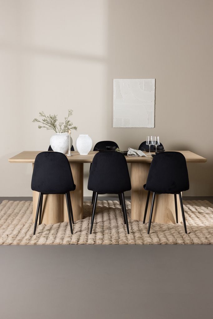 - Polar Matstol: Stolarna är designade i en genomgående svart kulör med ben i svart pulverlackerad metall. Den helklädda designen och den rundade ryggen och sitsen i svart sammetstyg ger både stil och komfort. Lätt montering krävs.