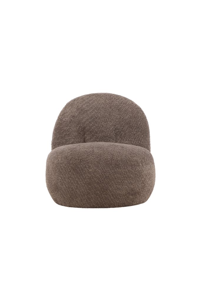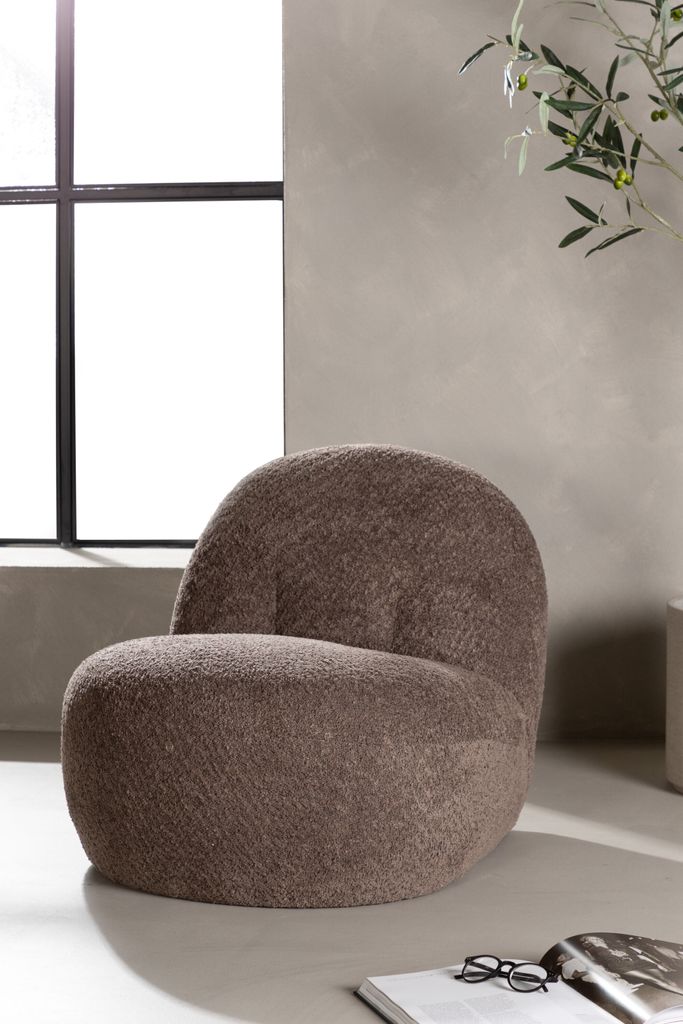Bekväm och stilren loungestol i brun boucletyg, perfekt för hemmets alla rum.