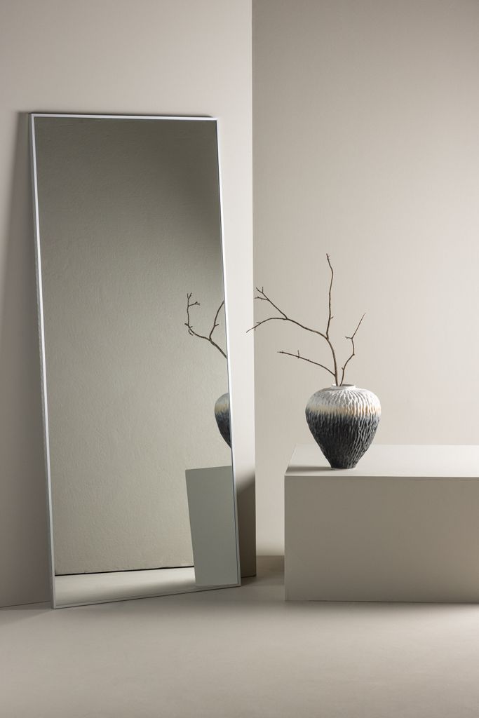 Förhöj din hall med spegeln Orlando som kombinerar stilfull design i silver och hållbarhet i glas och aluminium.
