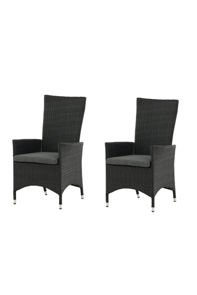 Njut av sommaren i stil med Venture Home Padova Stol 2-pack. Dessa moderna matstolar erbjuder en oslagbar komfort tack vare deras fällbara ryggstöd. Den eleganta svarta färgen på konstrottingen kombineras med en robust aluminiumstomme, vilket ger ett tidlöst och sofistikerat utseende som förhöjer vilken uteplats som helst.