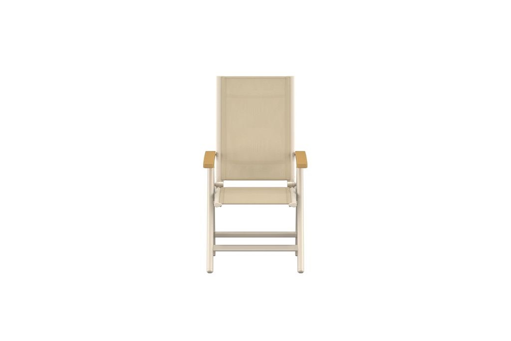 Stolen har en slitstark stomme i aluminium som gör den lätt att flytta, samtidigt som armstöden i teak ger ett elegant och naturligt intryck. Den beige sitsen i tåligt textilene-material är både bekväm och lättskött, vilket gör Panama till ett perfekt val för uteplatsen, balkongen eller trädgården.