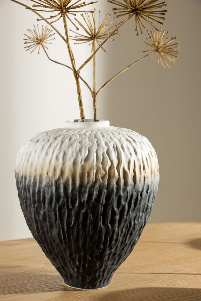 Möta Venture Home Pane, en förtrollande vas som blir den perfekta prydnaden för ditt matbord. Tillverkad i keramik och med en imponerande höjd på 34 cm, ger Pane en känsla av elegans och unikhet till ditt hem.