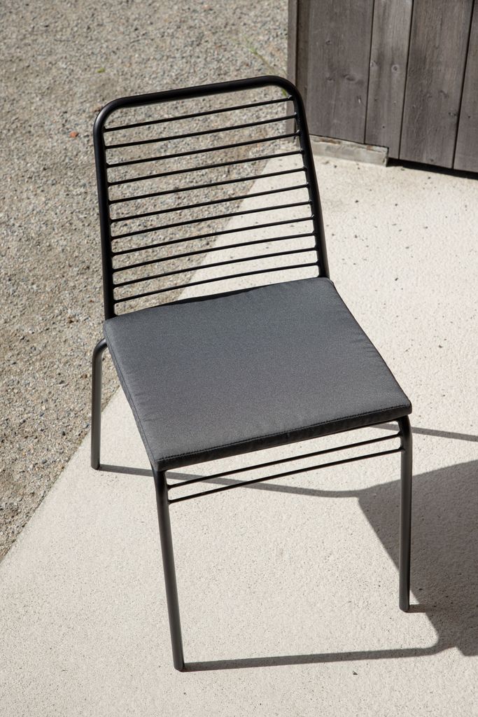 Panjin matstol kombinerar stil och komfort med en robust stålram och mjuk dyna, perfekt för utomhusbruk.