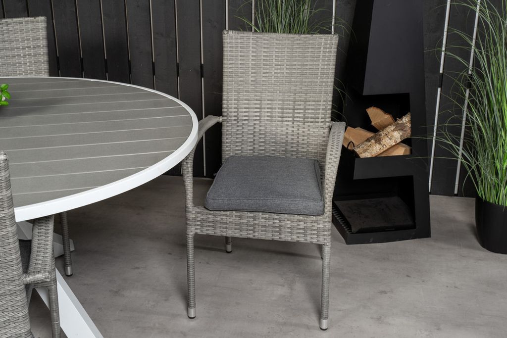 Venture Home Levels & Copacabana Rektangulärt Matbord 160 x 100 Vit + 6 st Reclinerstolar Grå
