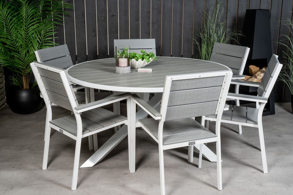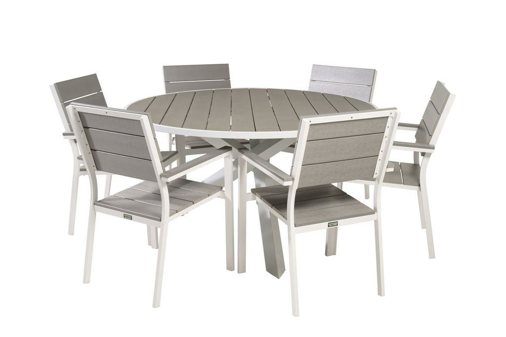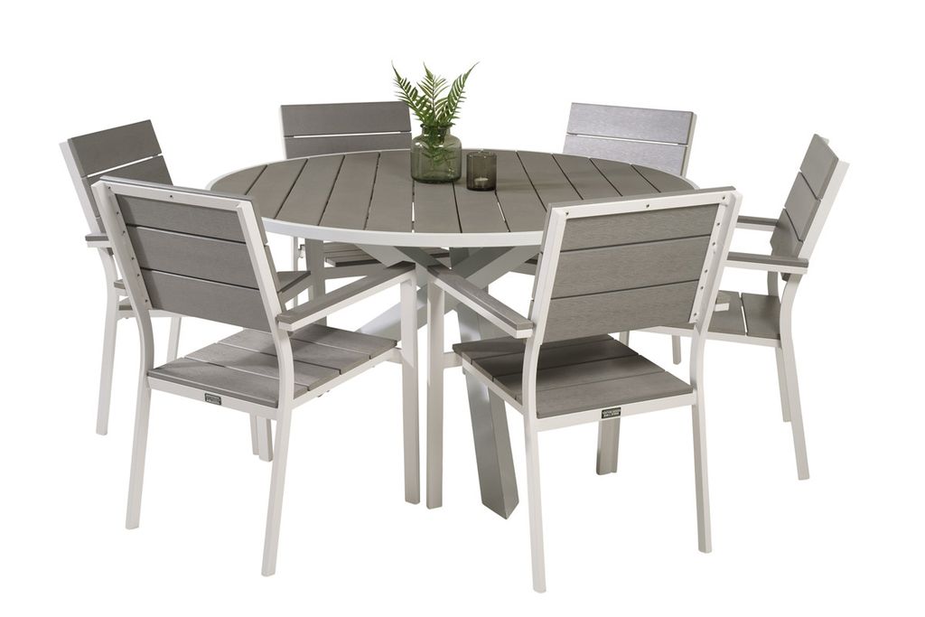 Venture Home Levels & Copacabana Rektangulärt Matbord 160 x 100 Vit + 6 st Reclinerstolar Grå