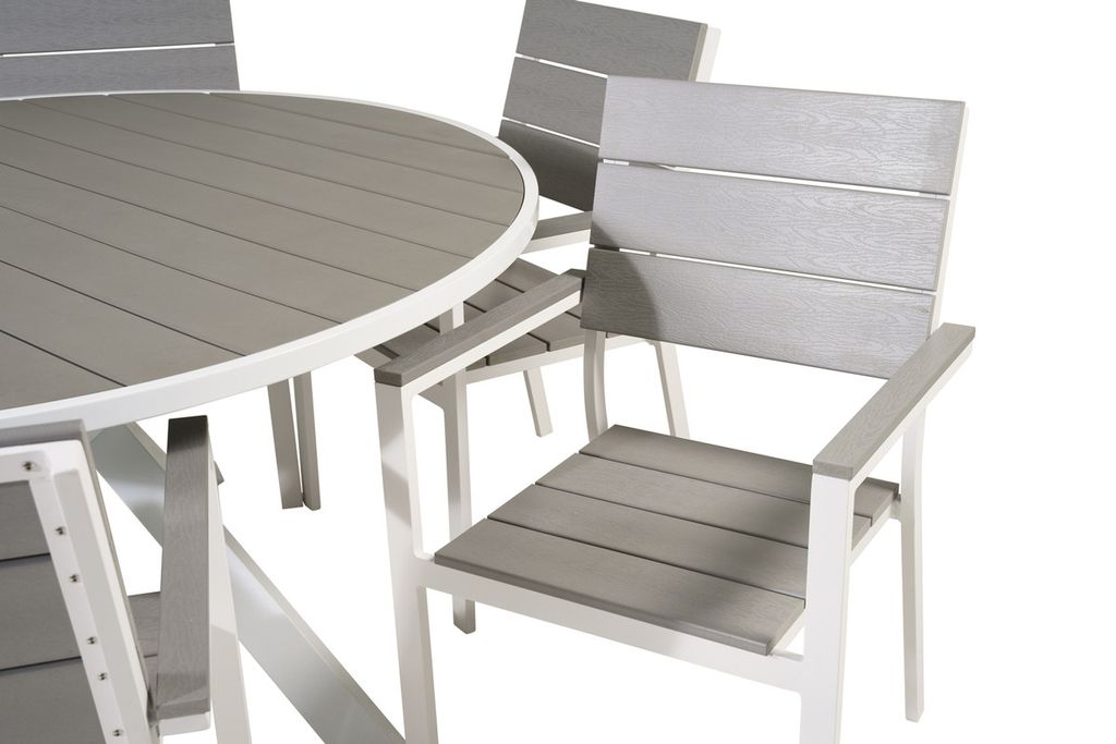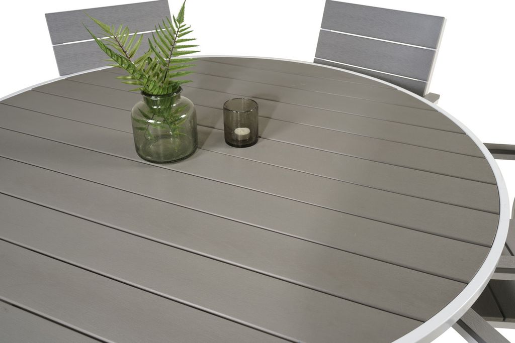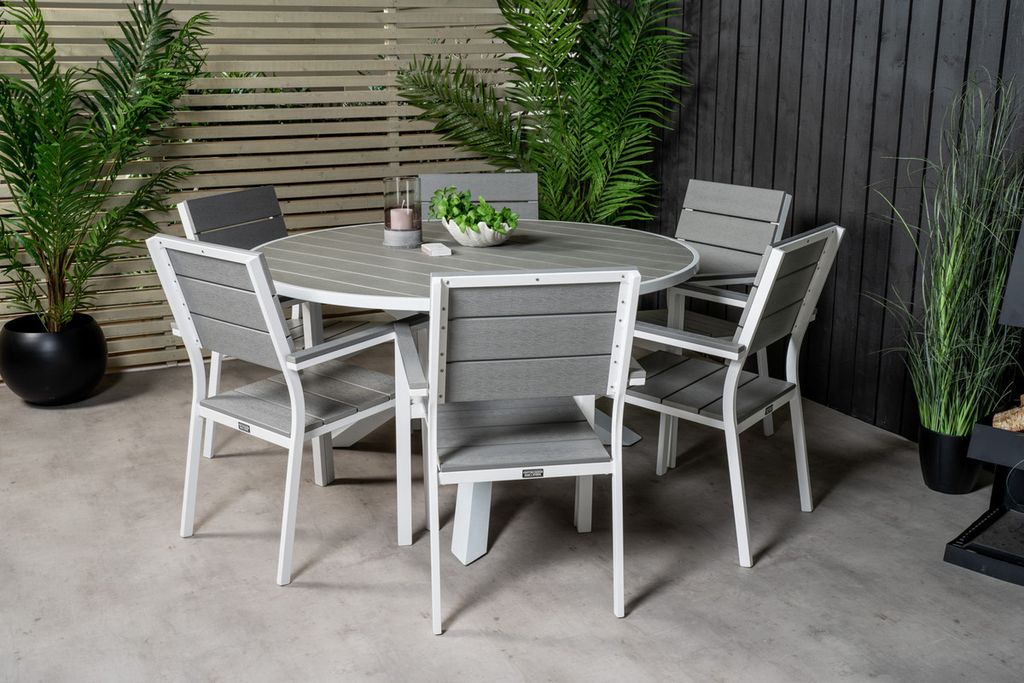 En modern rund matgrupp med gemytlig och familjär känsla! Vårt vackra matbord Parma kombineras perfekt med våra bekväma matstolar Levels. Möblera din uteplats och samla familjen för en solig sommarlunch i den här iögonfallande matgruppen!