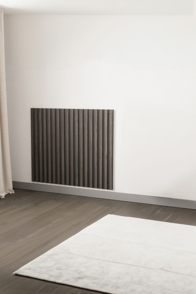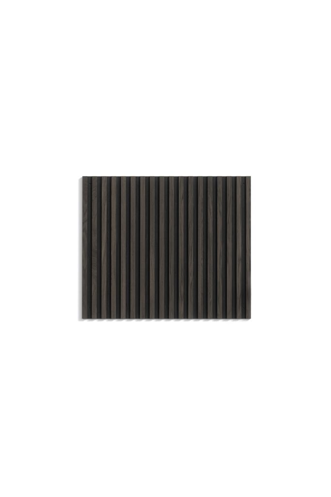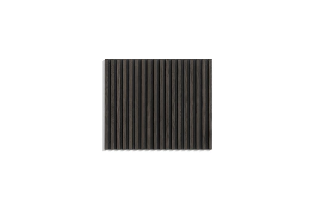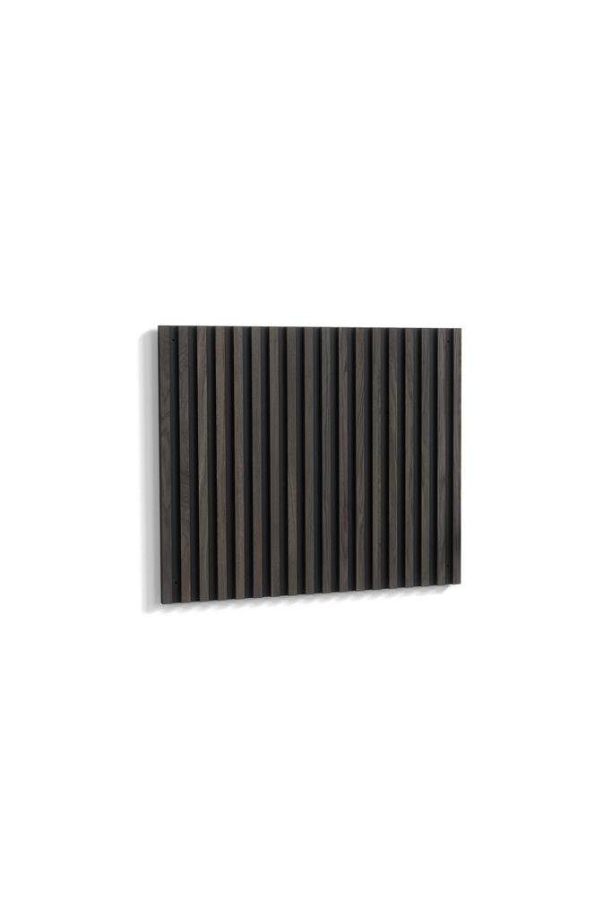 Med sina mått på 3 x 80 x 95 cm passar den perfekt som en stilfull bakgrund för ditt sängbord eller som en inredningsdetalj i hallen. De mörkbruna ribborna skapar en subtil kontrast mot den djupsvarta basen, vilket ger rummet en omedelbar känsla av lyx.
