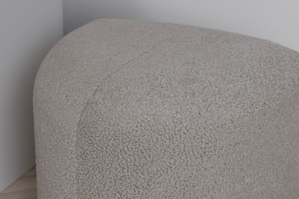 Peg Puff i greige teddytyg är både modern och praktisk, perfekt som fotpall eller extra sittplats.