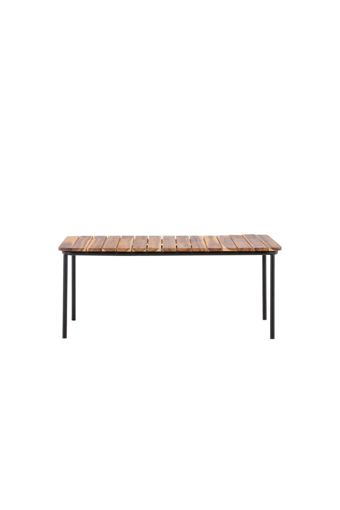 Akacia-träet har en rik, naturlig färg och stålsbenen ger en stilren kontrast som passar perfekt i alla utomhusmiljöer. Med en höjd på 40 cm, en bredd på 65 cm och en längd på 100 cm, erbjuder detta bord en rymlig yta utan att dominera utrymmet.