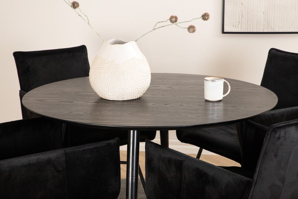 Venture Home Alma & Panama Runt Matbord ⌀120 Svart + 4 st Positionsstolar Svart
