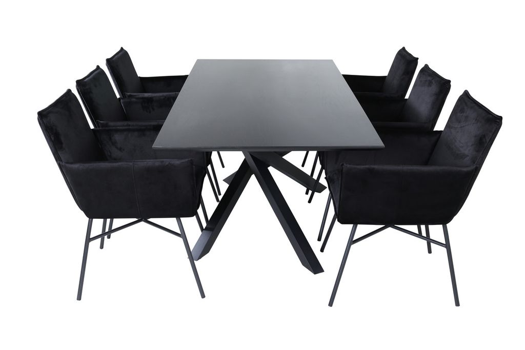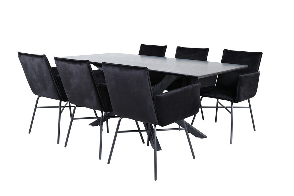 Venture Home Petra & Piazza 6 st Matstolar Svart + Rektangulärt Matbord 180 x 90 Svart