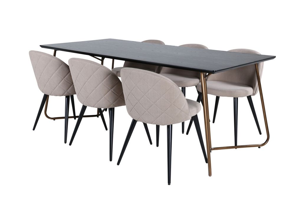 Venture Home Petra & Velvet Rektangulärt Matbord 190 x 90 Svart + 6 st Matstolar Beige