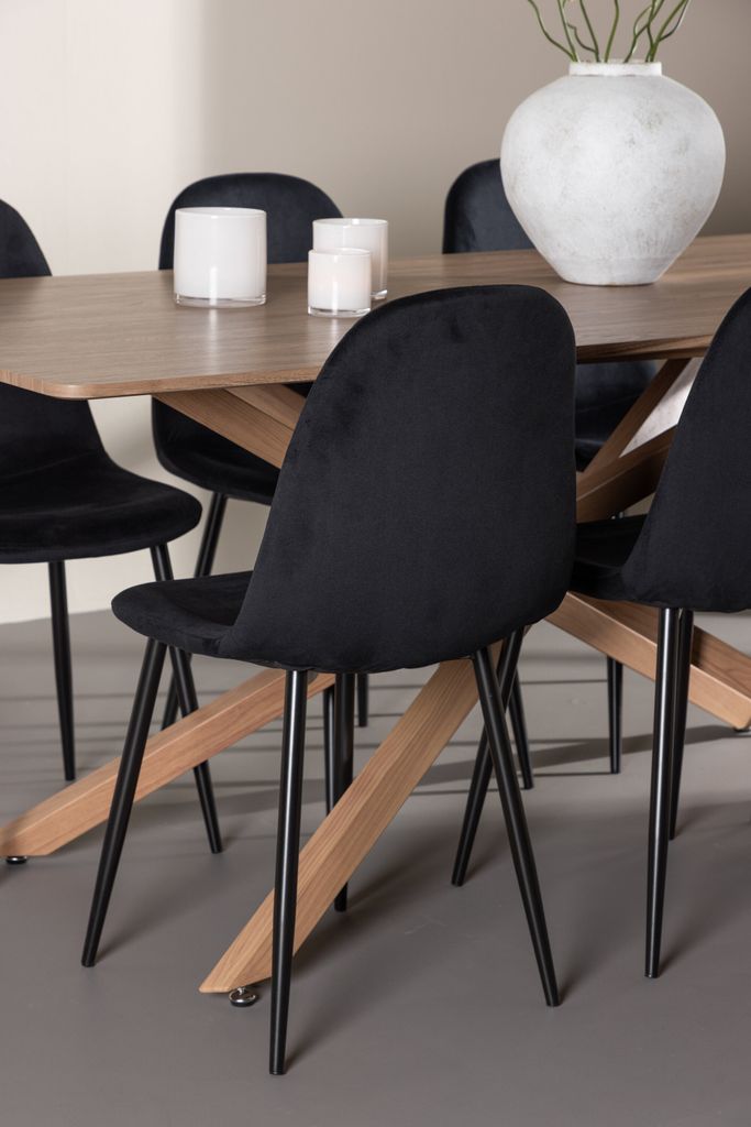 Polar Matstol är helklädd i svart sammet som ger en sofistikerad känsla till ditt hem. Med rundad rygg och sits samt ben i svart pulverlackerad metall, kombinerar denna stol komfort och elegans. Den genomgående svarta kulören gör den till en tidlös klassiker i vilket rum som helst.