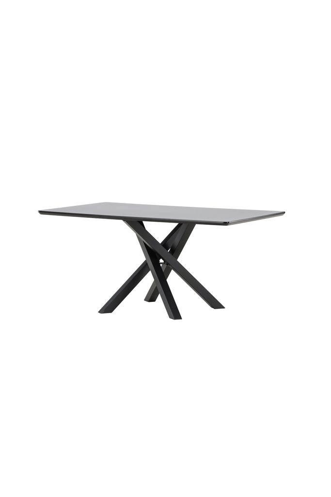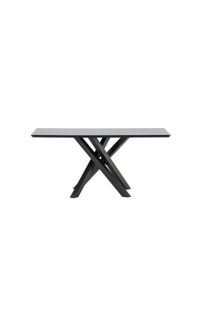 Bordets unika design med korslagda ben skapar en intressant visuell effekt som fångar uppmärksamheten. Den matta svarta finishen bidrar till en sofistikerad estetik och gör det lätt att matcha med olika inredningsstilar.