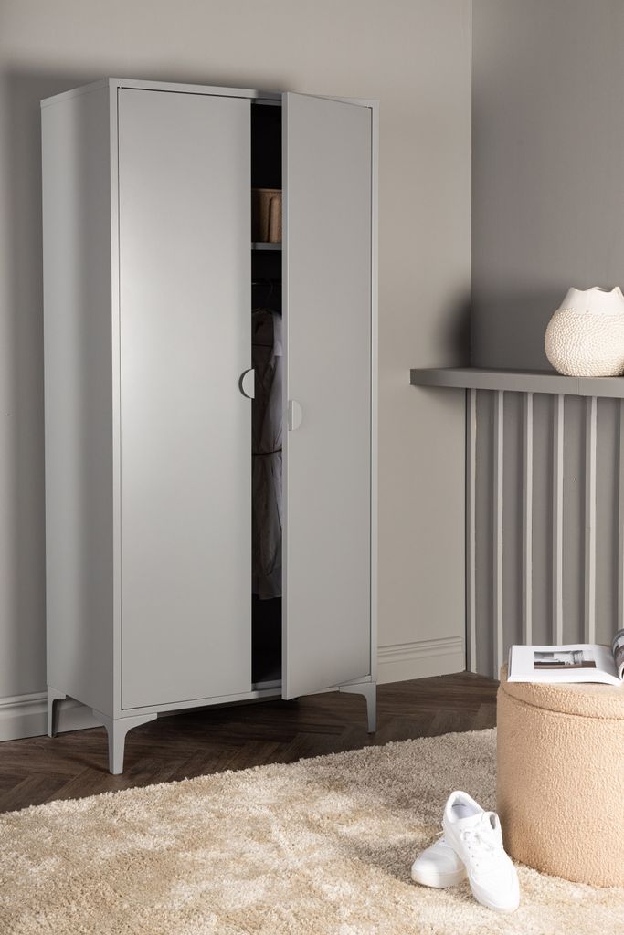 Förnya ditt rum med Venture Home Piring Förvaringsgarderob, en stilren och funktionell lösning för ditt hem. Denna garderob i elegant grått stål har en robust konstruktion med två dörrar som öppnar upp till fyra rymliga hyllplan. Perfekt för förvaring av allt från kläder till accessoarer och mer därtill.