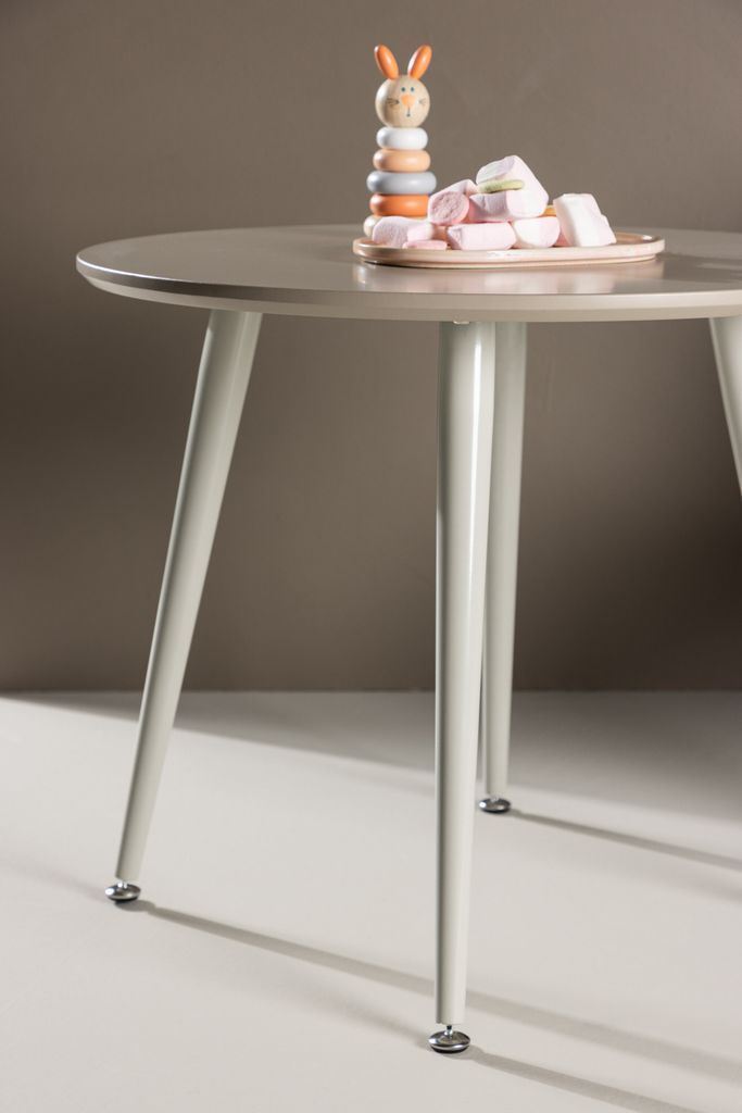Detta barnmatbord är tillverkat av robust MDF och stål, vilket säkerställer hållbarhet och stabilitet. Bordets stilrena och moderna estetik bidrar till en jordnära atmosfär i barnrummet. Benen är försedd med justerbara fötter, vilket ger extra stabilitet på ojämna ytor.