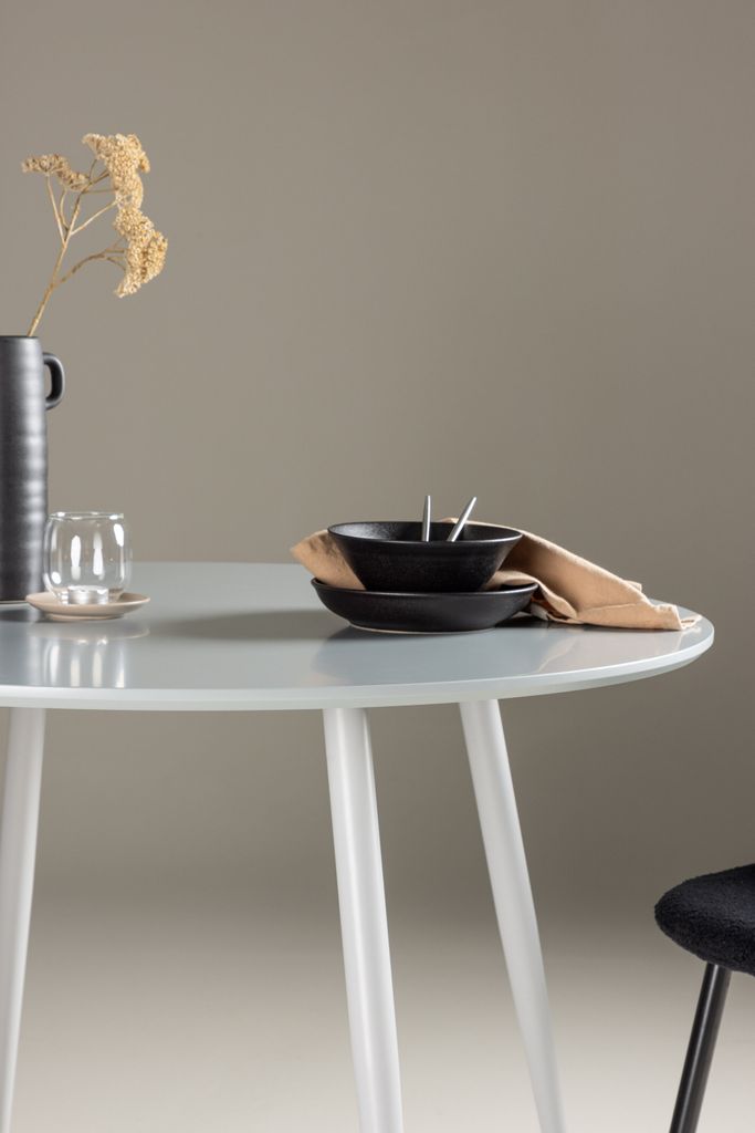 Elegant och tidlöst grått matbord med 100 cm diameter. Perfekt för att samla familj och vänner.