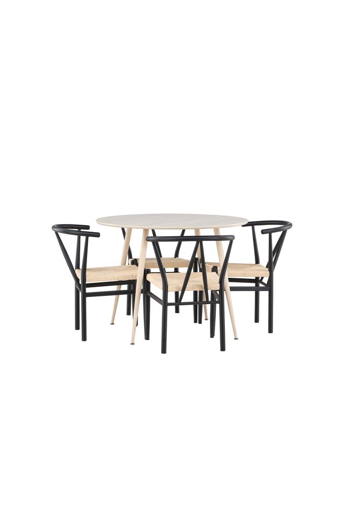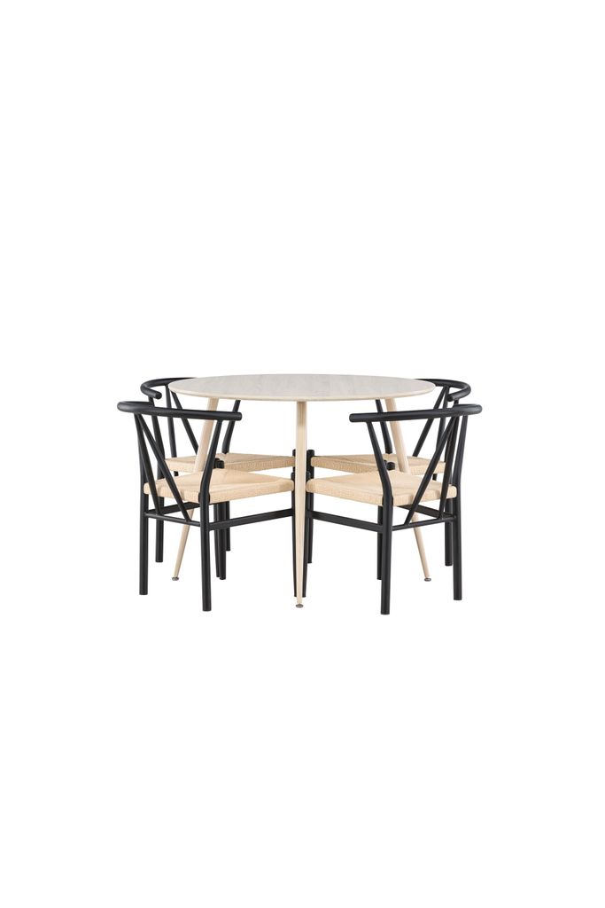 Upptäck den perfekta matgruppen för ditt hem med Plaza matbord och Alfons matstolar. Plaza matbord är tillverkat av hållbart MDF-material och har en vitpigmenterad yta som ger en varm och inbjudande känsla till rummet. Med en diameter på 100 cm är det idealiskt för mindre utrymmen, samtidigt som det erbjuder tillräckligt med plats för bekväma måltider med familj och vänner. De moderna linjerna och den eleganta designen skapar en lugn och harmonisk atmosfär.