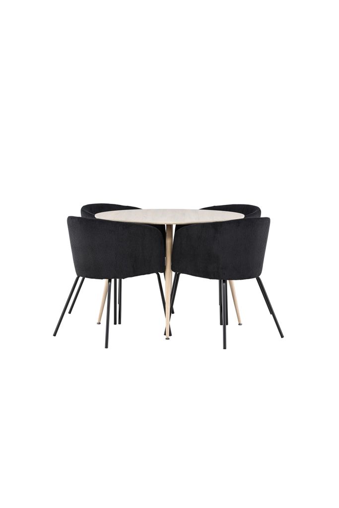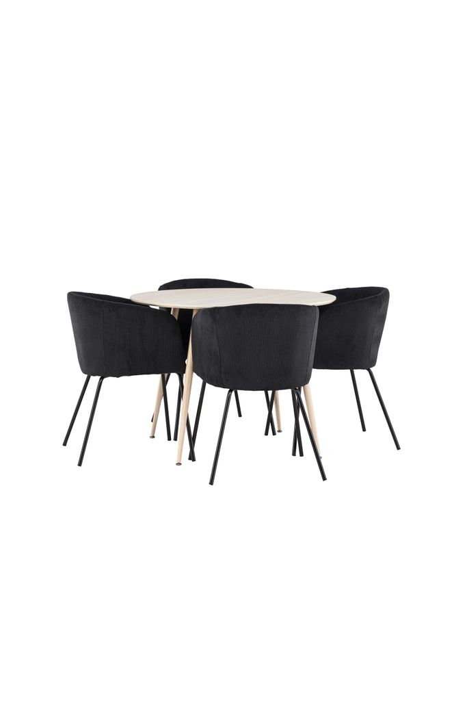 Berits moderna uttryck och distinkta design med svarta stålben lyfter vilket matrum som helst till nya höjder. Ge ditt matrum en känsla av lyx och modernitet med denna sofistikerade matgrupp från Venture Home, där stil möter funktion på bästa sätt.