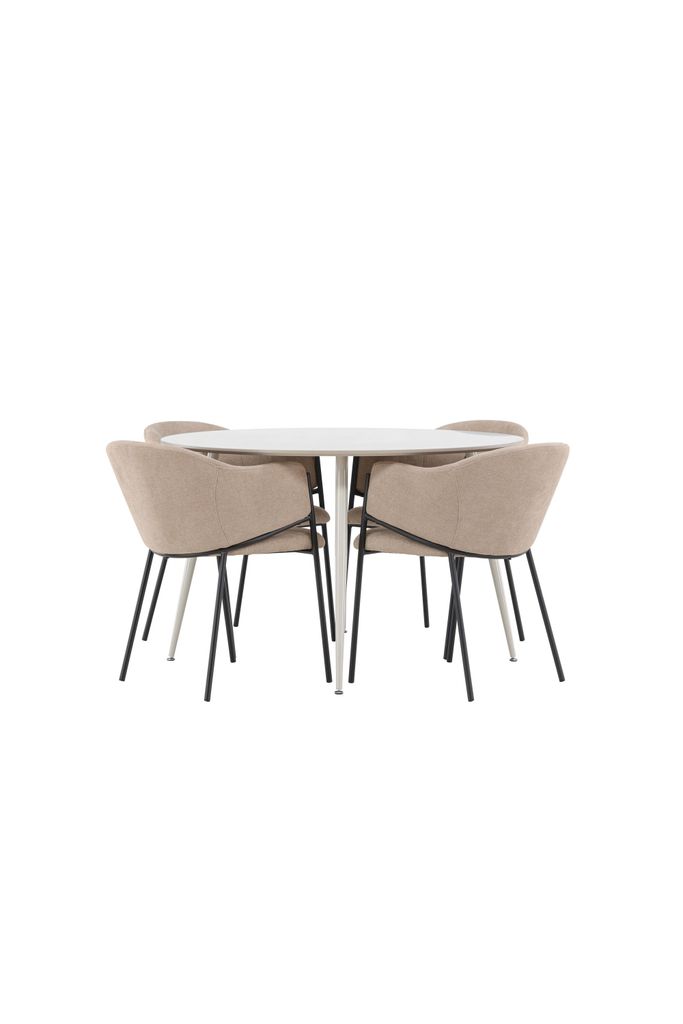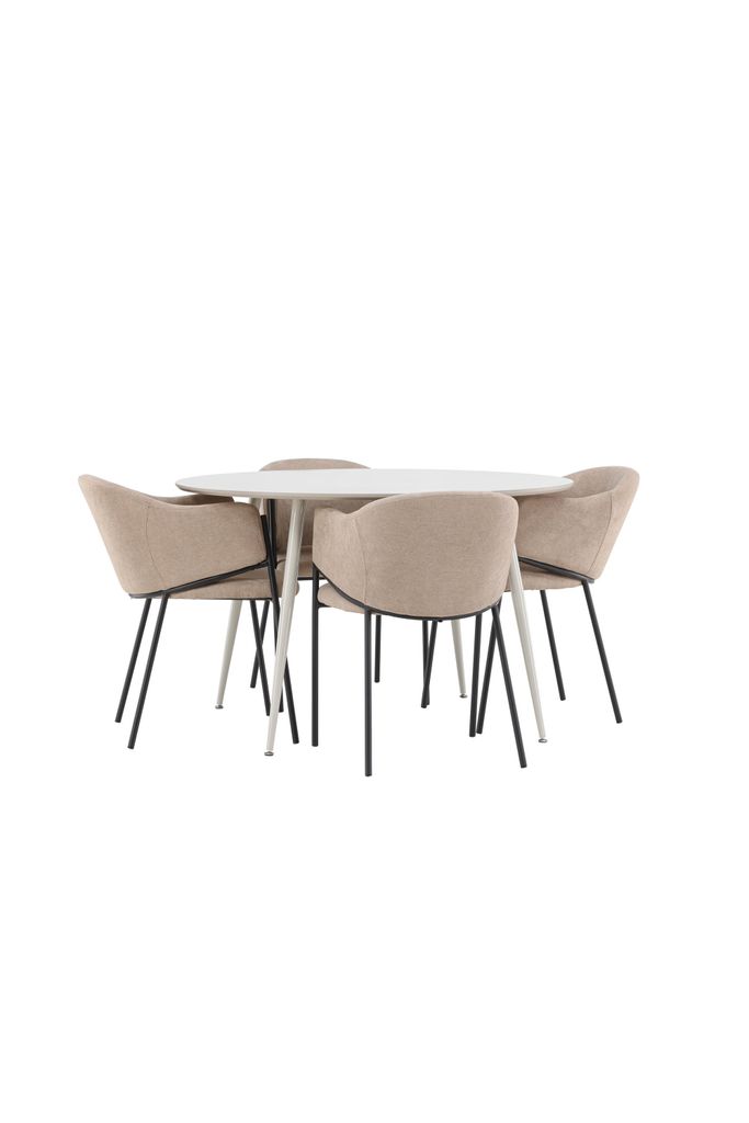 Matbordet Plaza, tillverkat av MDF, har en ljus beige färg som tillför en mjuk och varm känsla till ditt matrum. Med en generös diameter på 120 cm erbjuder bordet gott om plats för mat och samtal, samtidigt som dess runda form bidrar till en balanserad och gemytlig miljö. Bordets robusta konstruktion säkerställer långvarig användning och stabilitet.