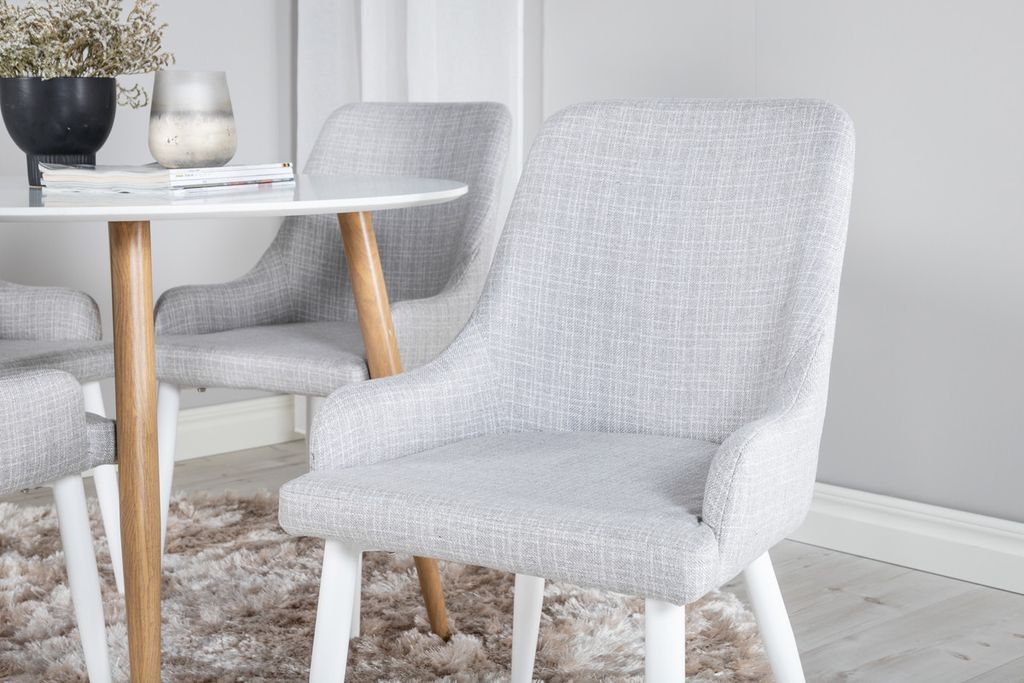 Venture Home Plaza 4 st Matstolar Grå + Runt Matbord ⌀100 Vit