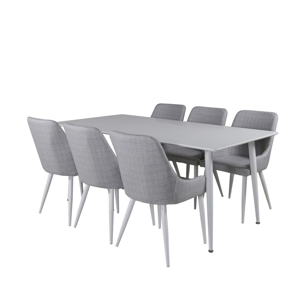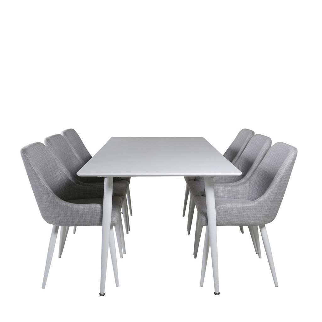 Venture Home Plaza & Polar 6 st Matstolar Grå + Rektangulärt Matbord 180 x 90 Vit