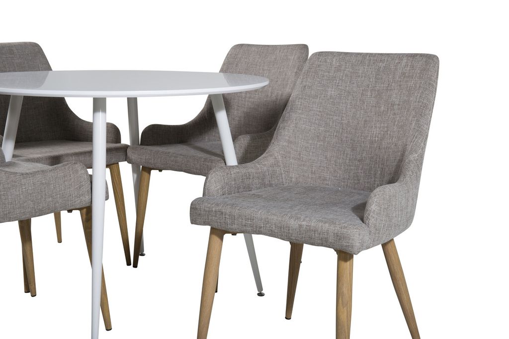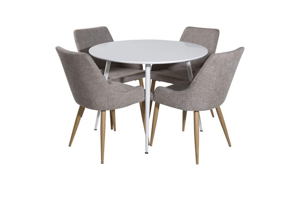 Venture Home Plaza Runt Matbord ⌀100 Vit + 4 st Matstolar Grå