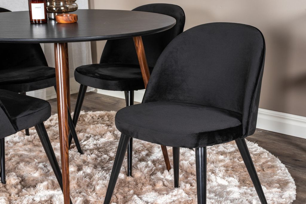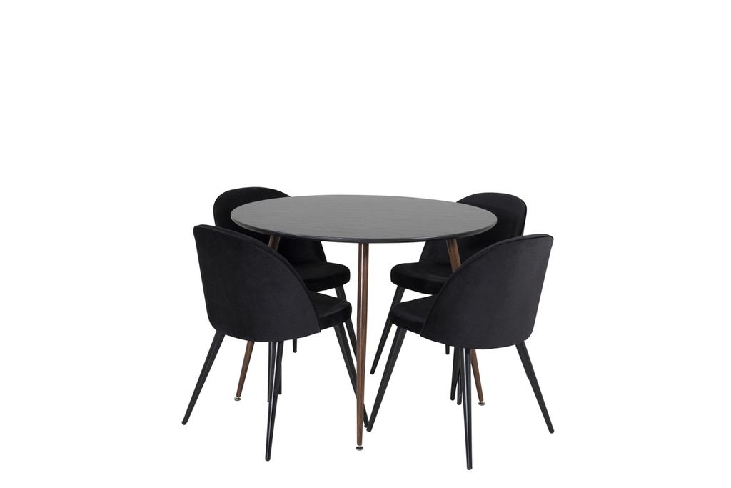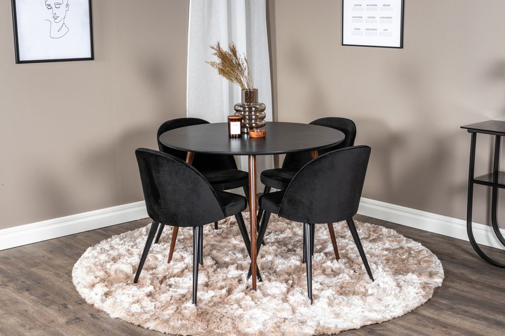 Venture Home Plaza & Velvet Runt Matbord ⌀100 Svart + 4 st Matstolar Svart