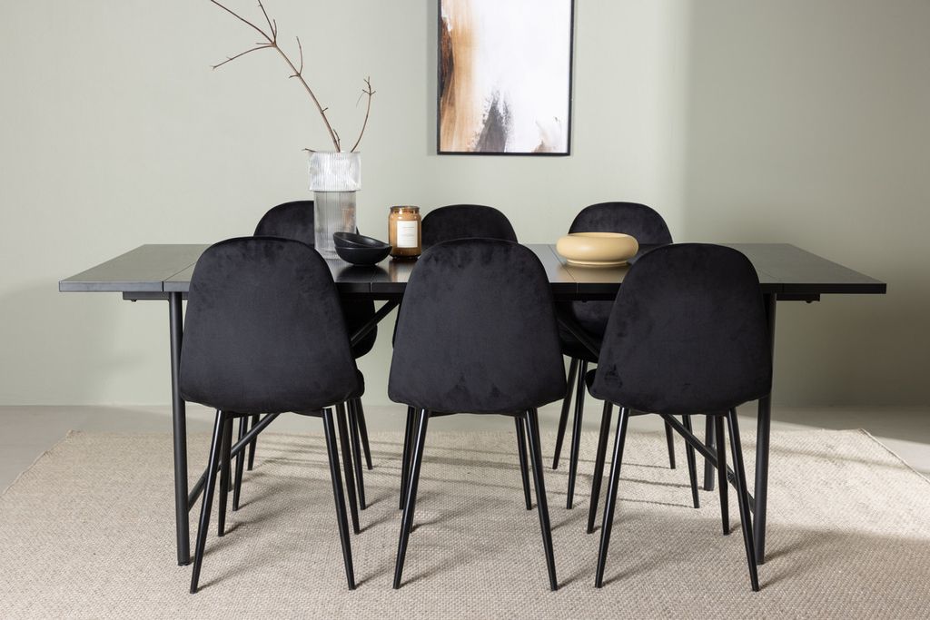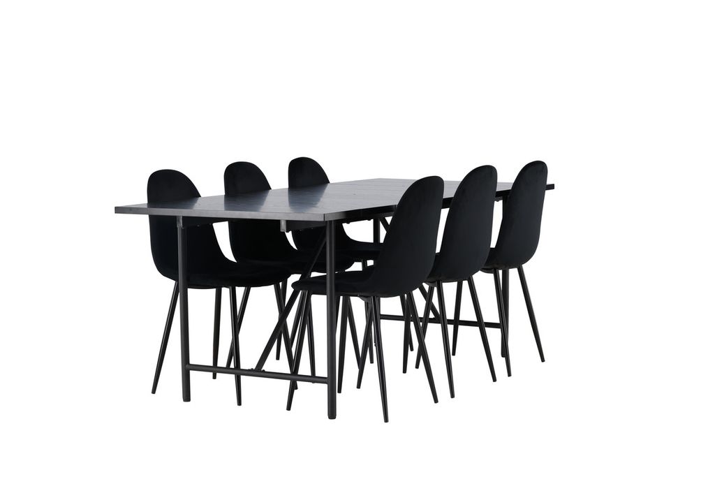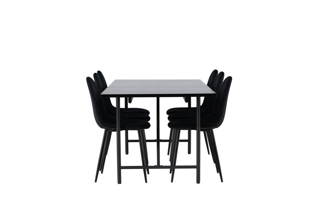 Venture Home Polar & Astrid 6 st Matstolar Svart + Rektangulärt Matbord 200 x 90 Svart