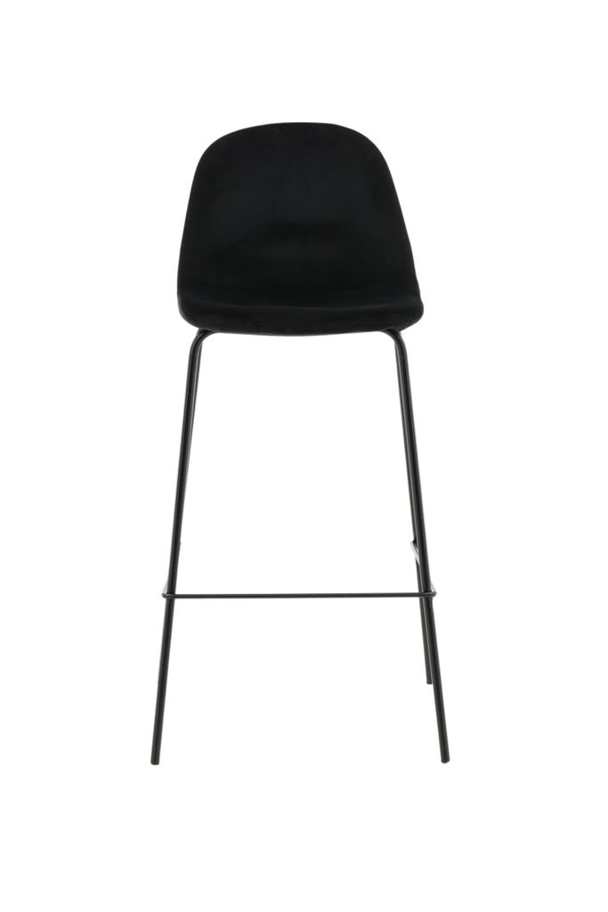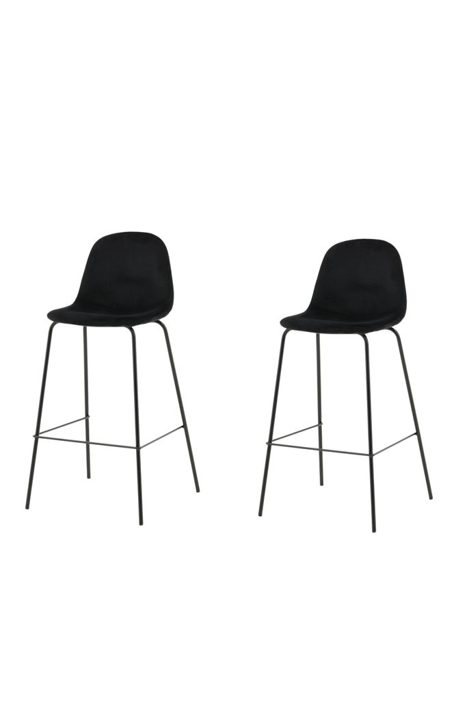 Elegant och bekväm barstol i svart sammet och pulverlackerad metall. Perfekt för moderna kök och barer.