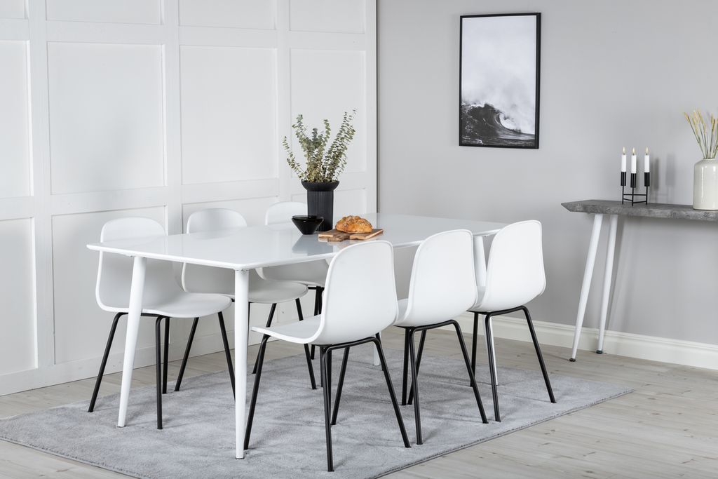 Venture Home Polar Matbord är en perfekt kombination av stil och funktion. Detta stilrena matbord från serien Polar erbjuder en tidlös design som passar alla inredningsstilar. Med en vit bordsskiva i MDF och elegant utsvängda ben i metall, skapar bordet ett ljust och fräscht lyster i rummet.