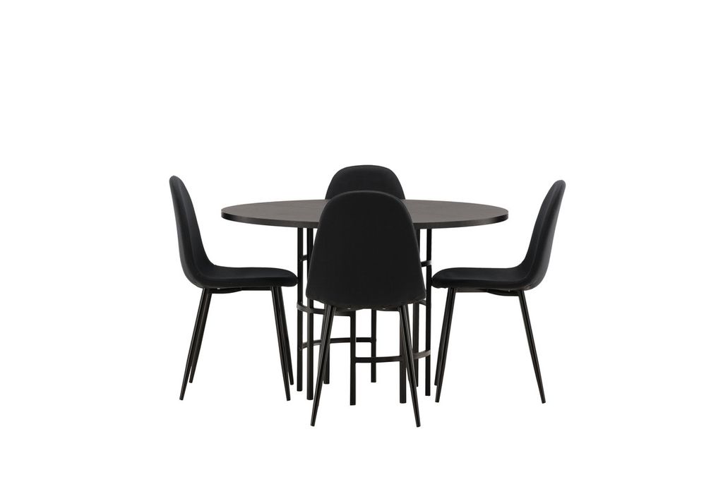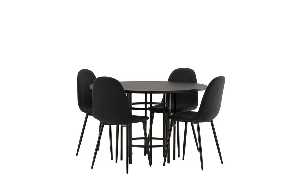 Venture Home Polar & Copenhagen 4 st Matstolar Svart + Runt Matbord ⌀115 Svart