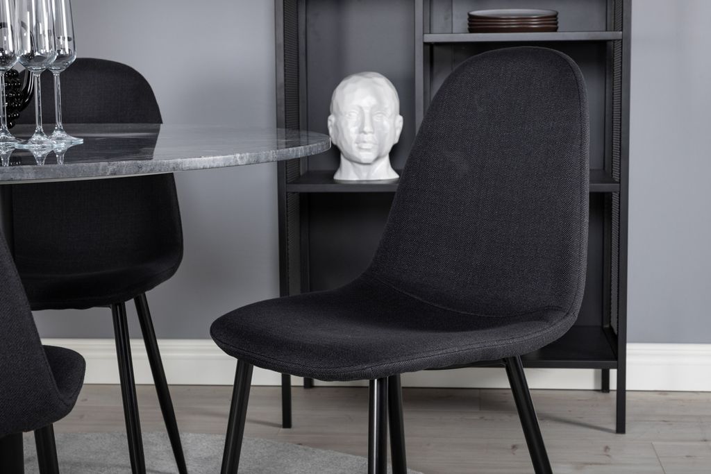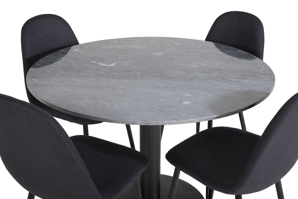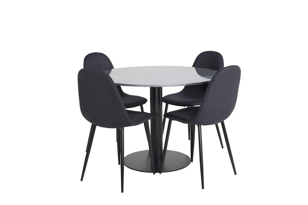 Venture Home Polar & Estelle 4 st Matstolar Svart + Runt Matbord ⌀106 Mörkgrå