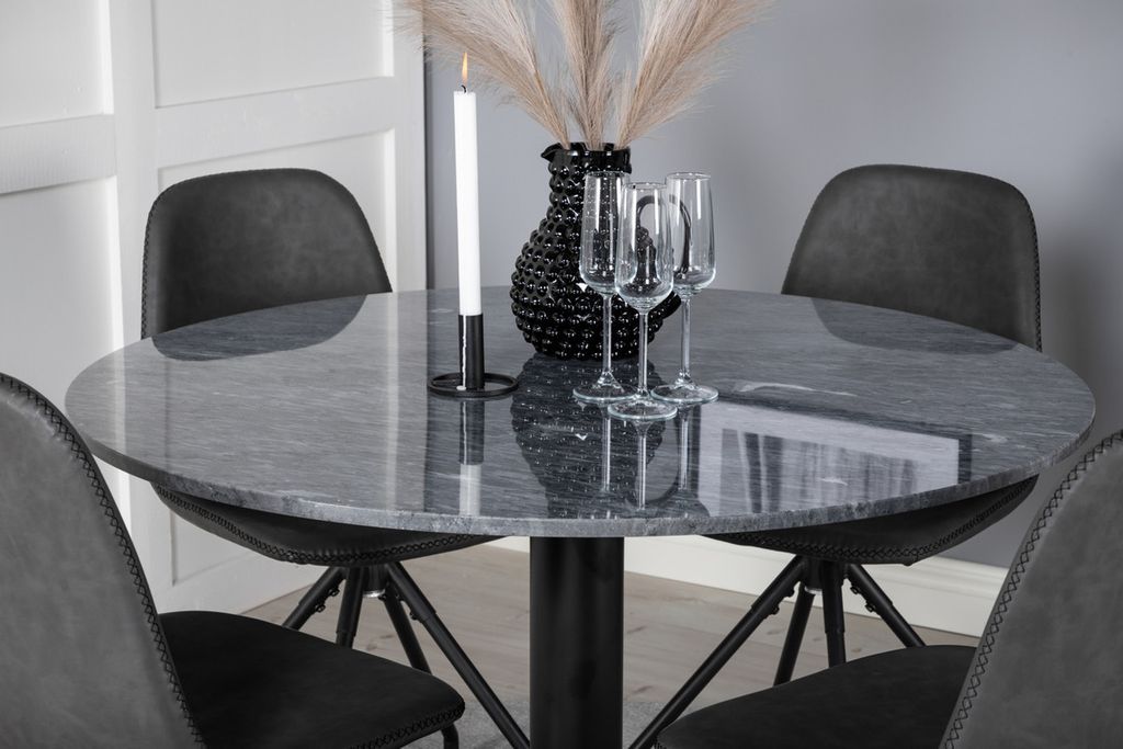 Det snygga matbordet i vacker marmor i serien Estelle tillsammans med tidslösa matstolar i serien Polar. Skapa något snyggt och socialt med plats för god mat och umgänge!