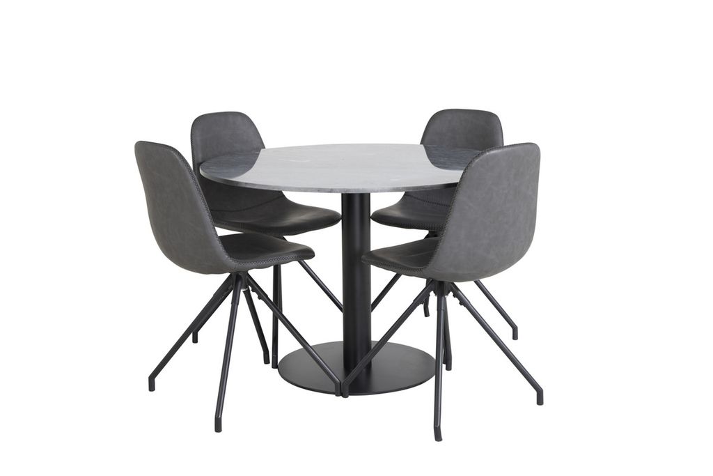 Venture Home Polar & Estelle 4 st Matstolar Svart + Runt Matbord ⌀106 Mörkgrå